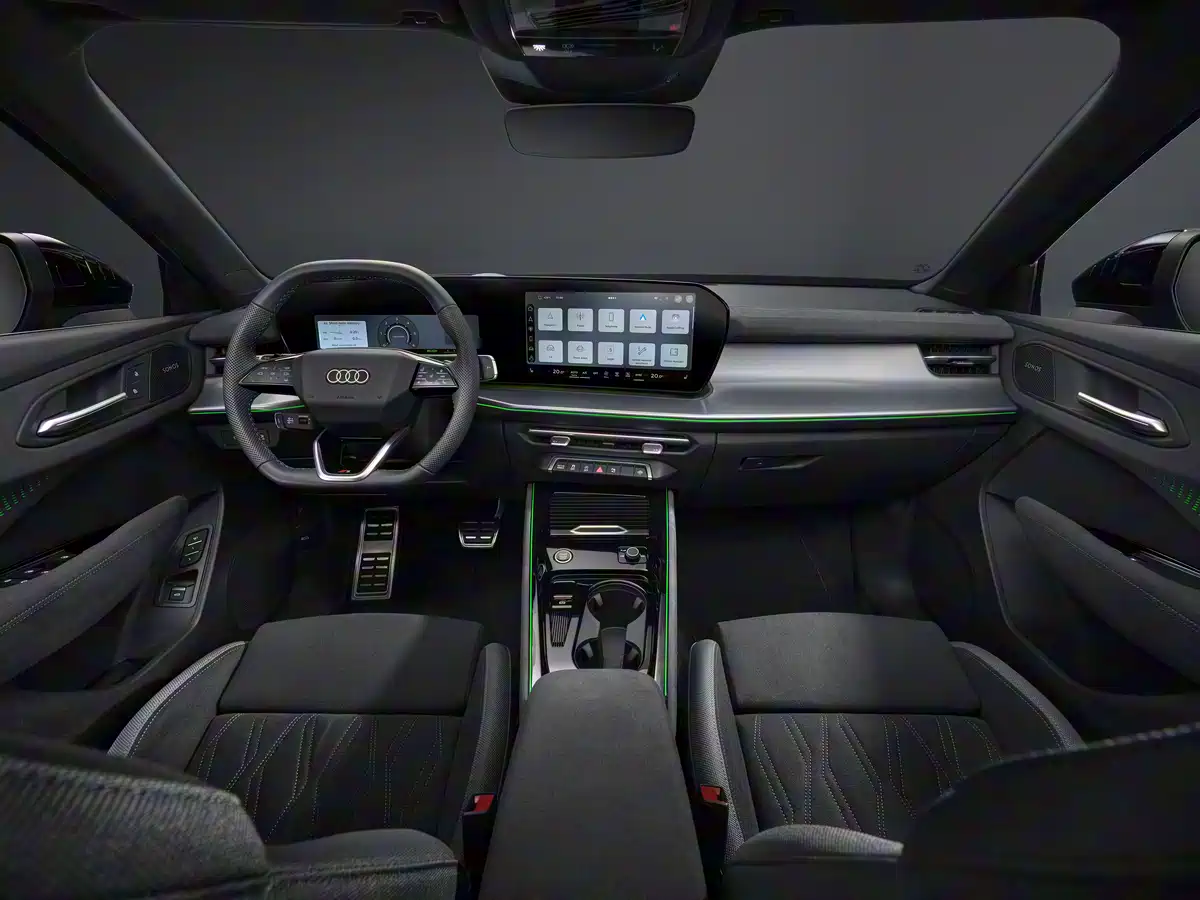 内饰我们就直接看海外版,大概率也是一样的,新车采用了全新的内饰风格,这块双联屏由一块11.9英寸仪表+12.8英寸中控屏组成,同时还有抬头显示,预计这个配置是中高配才有。