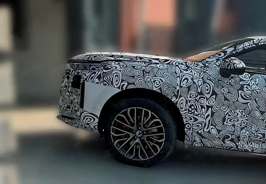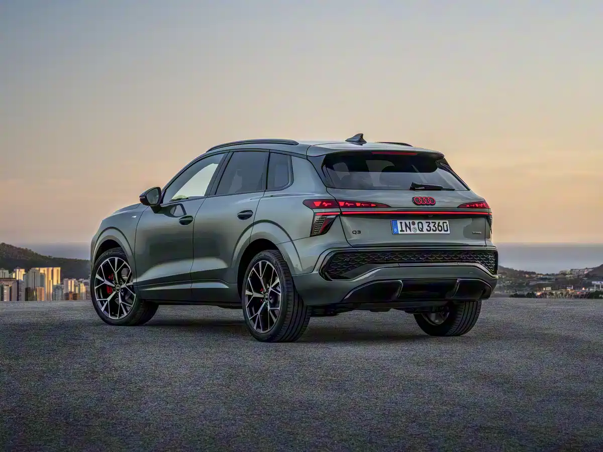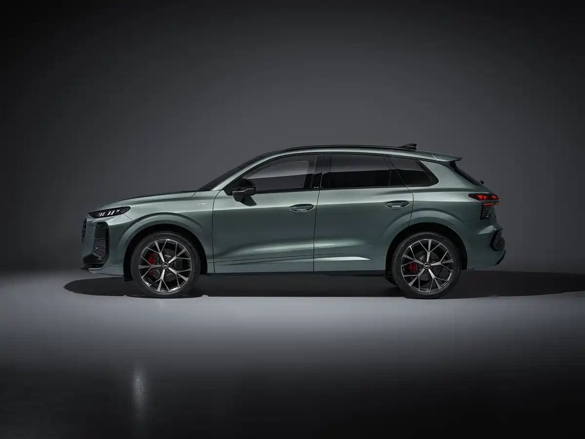 侧面造型和海外版几乎一致,基本就是传统SUV的设计,应该能迎合大部分人的审美。测试车还配备了红色刹车卡钳,推测是S-Line版本。当然有一点和海外版不一样,那就是国产版采用的是隐藏式门把手,海外版则是传统设计,这一边笔者更倾向于传统设计,毕竟燃油车没必要省那一点风阻而牺牲实用性。另外,通过后门车窗的尺寸来判断,新车应该进行了加长。