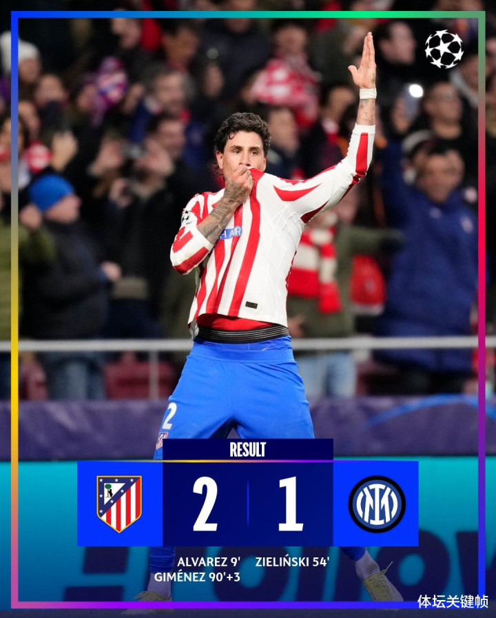 何塞・马里亚・希门尼斯在第 93 分钟的头球,为这场攻防节奏极快的马德里德比画上句号。比赛第 9 分钟,胡利安・阿尔瓦雷斯率先破门,这是他的第九粒欧冠进球;在此前后,主队门将胡安・穆索先后扑出费德里科・迪马尔科和哈坎・恰尔汉奥卢的射门。