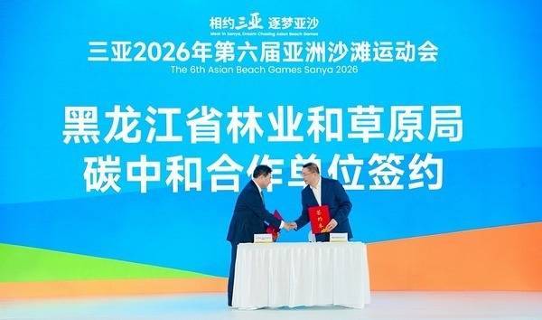 人民网哈尔滨3月24日电 (记者张齐)3月23日,在2026年第六届亚洲沙滩运动会倒计时30天系列活动现场,黑龙江省林草局与亚沙会执委会签署“碳中和合作协议”,并接受友好单位授牌。