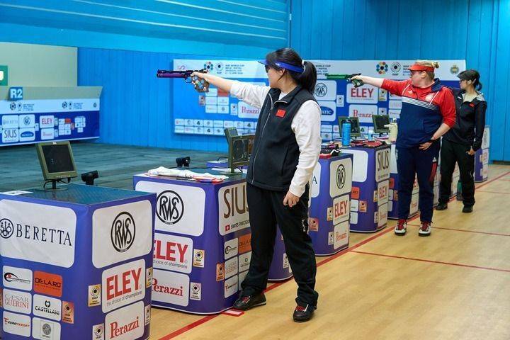 在女子25米手枪决赛中通过两轮加赛惜败于